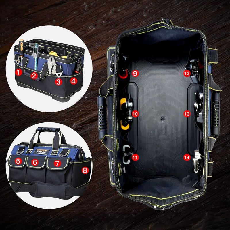 Heavy Duty Tool Bag with Adjustable Shoulder Strap - Large, Waterproof, Durable Polyester, No Assembly Required